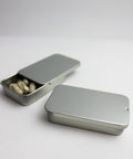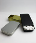 Boîte de conserve en métal étamé, dotée d’un couvercle coulissant facile à manipuler.